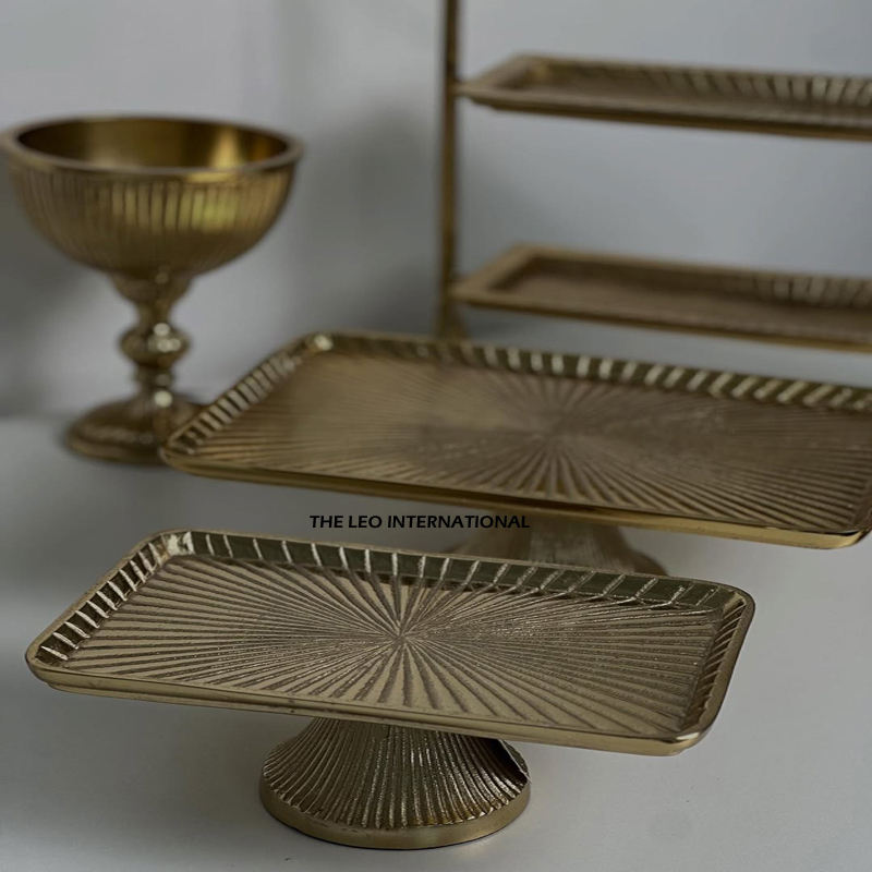 Creative Rectangle Shape Latest Design Serving Tray Set of 2 Aluminum Hand Engraved Design Tray for Party Equipment