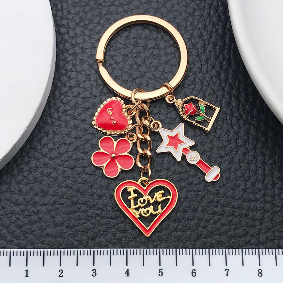 Creative Red Magic Wand for Love Rose Cherry Blossom Keychain Dripping Oil Girl Heart Sweetheart Pendant Cute Internet Metal