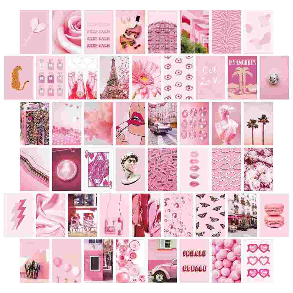Creative 4 X 6 Inch Pink Aesthetic Photo Poster Picture Frame Kit 50 Pcs Wall Collage Set for Stylish Room Decor and Home Decor