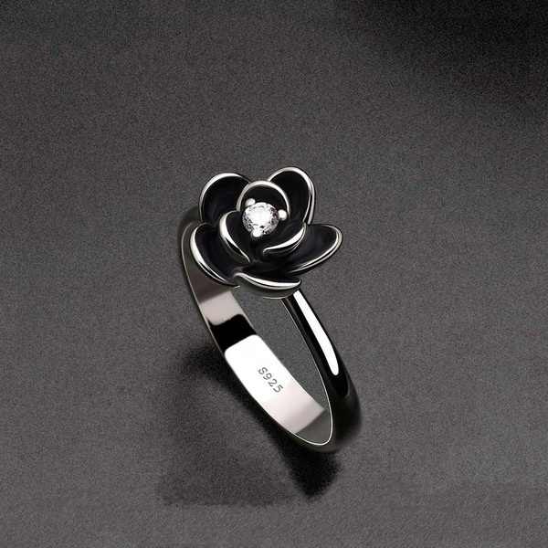 Creative Rose Flower 925 Silver Rings for Women Jewelry Gift CZ Zircon Wedding Engagement Ring Accessory High Quality
