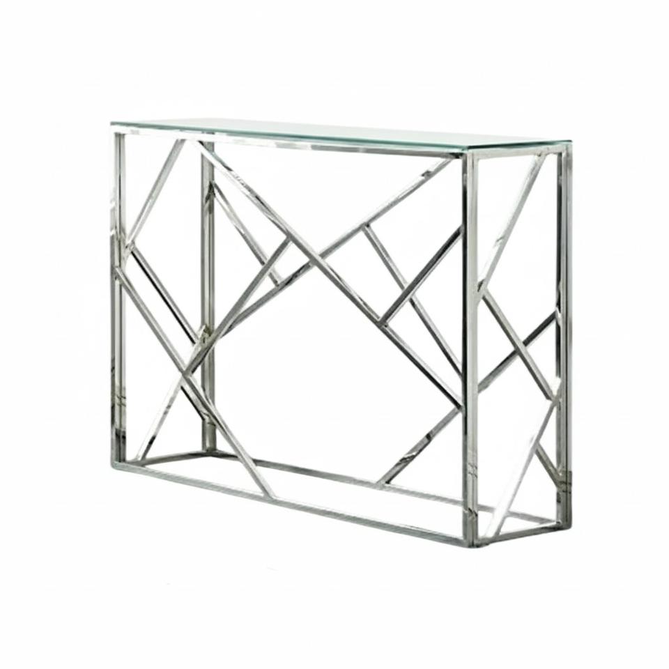 Creative Silver Metal Frame Console Table With Glass Top Modern Decorative Accent Sofa Table For Hallway And Entryway Furniture