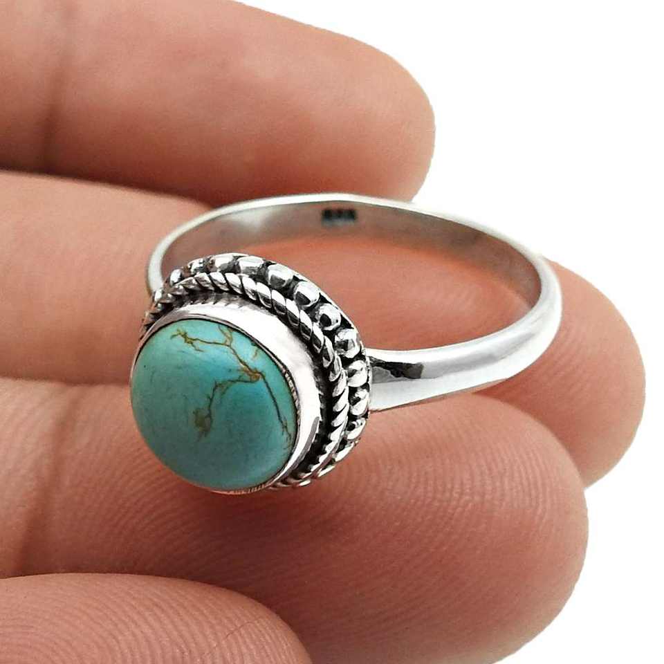 Creative & Simple Design Ring Made of Solid Pure 925 Sterling Silver Brilliant Round Cur Turquoise Gemstones Bohemian Jewelry