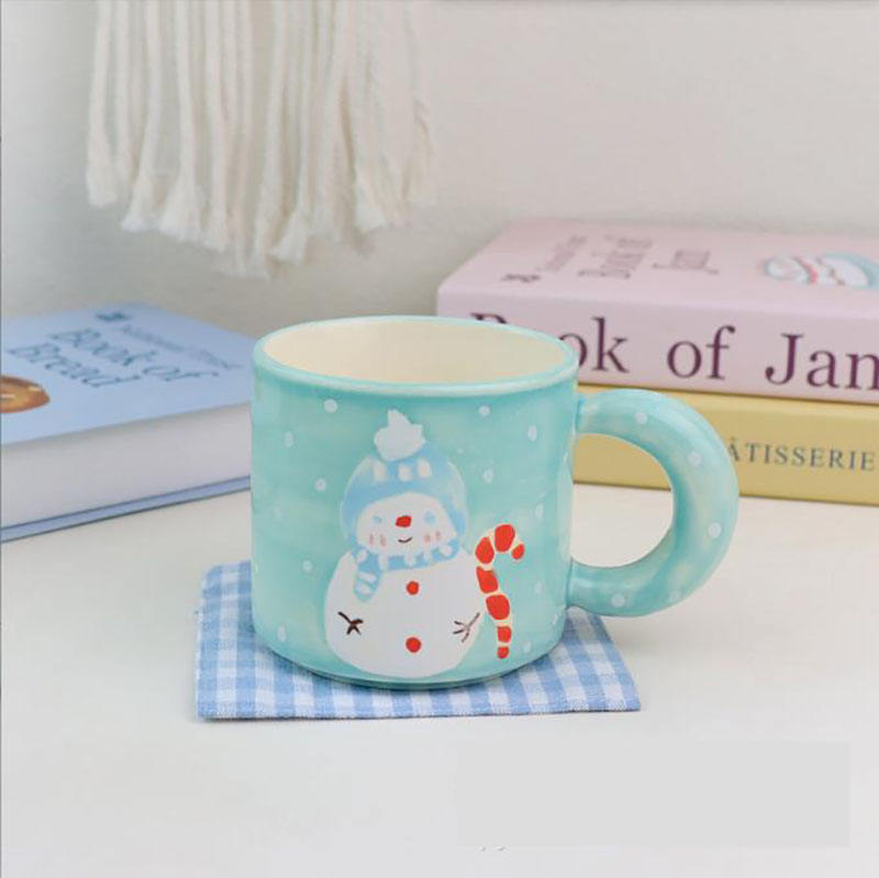 Creative Simple Hand-painted Christmas Afternoon Tea Ceramic Mug Cartoon Cute Breakfast Coffee Cup and Plate