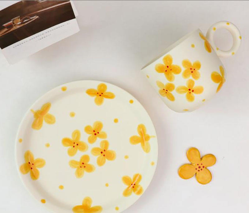 Creative Simple Hand-painted Floral Breakfast Milk Ceramic Mug 301-400ml Microwave Dishwasher Safe Exquisite Ins Afternoon Cups