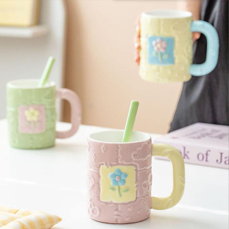 Creative Simple Hand-painted Floral Couple Afternoon Tea Ceramic Mug Exquisite Ins Breakfast Coffee Cup