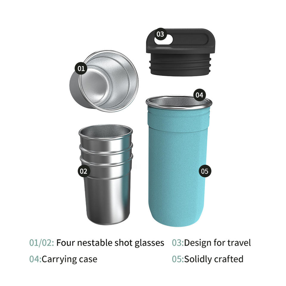 Creative Stainless Steel Shot Glass Set Four Piece Portable Nesting Cups for Outdoor Camping Whiskey Drinking