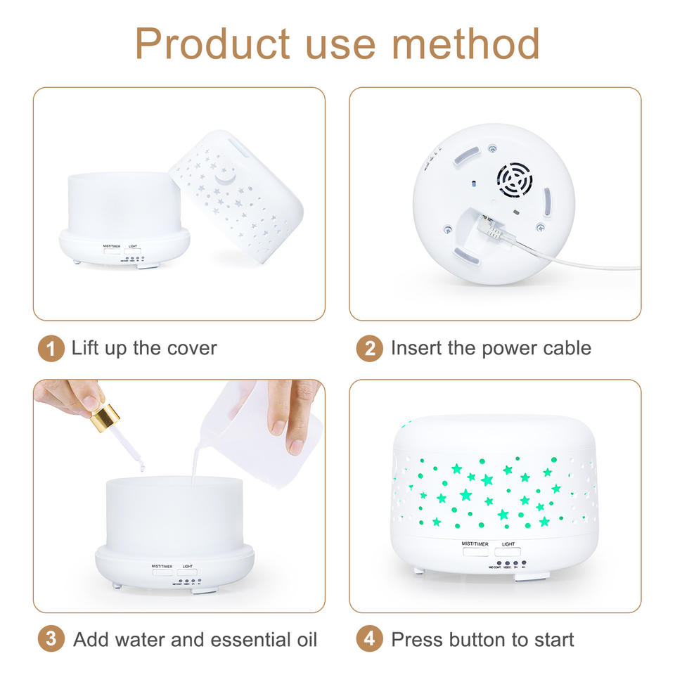 Creative Star Hollow Essential Oil Diffuser 0.5-1L USB Powered Humidifier With Light Home And Commercial Use