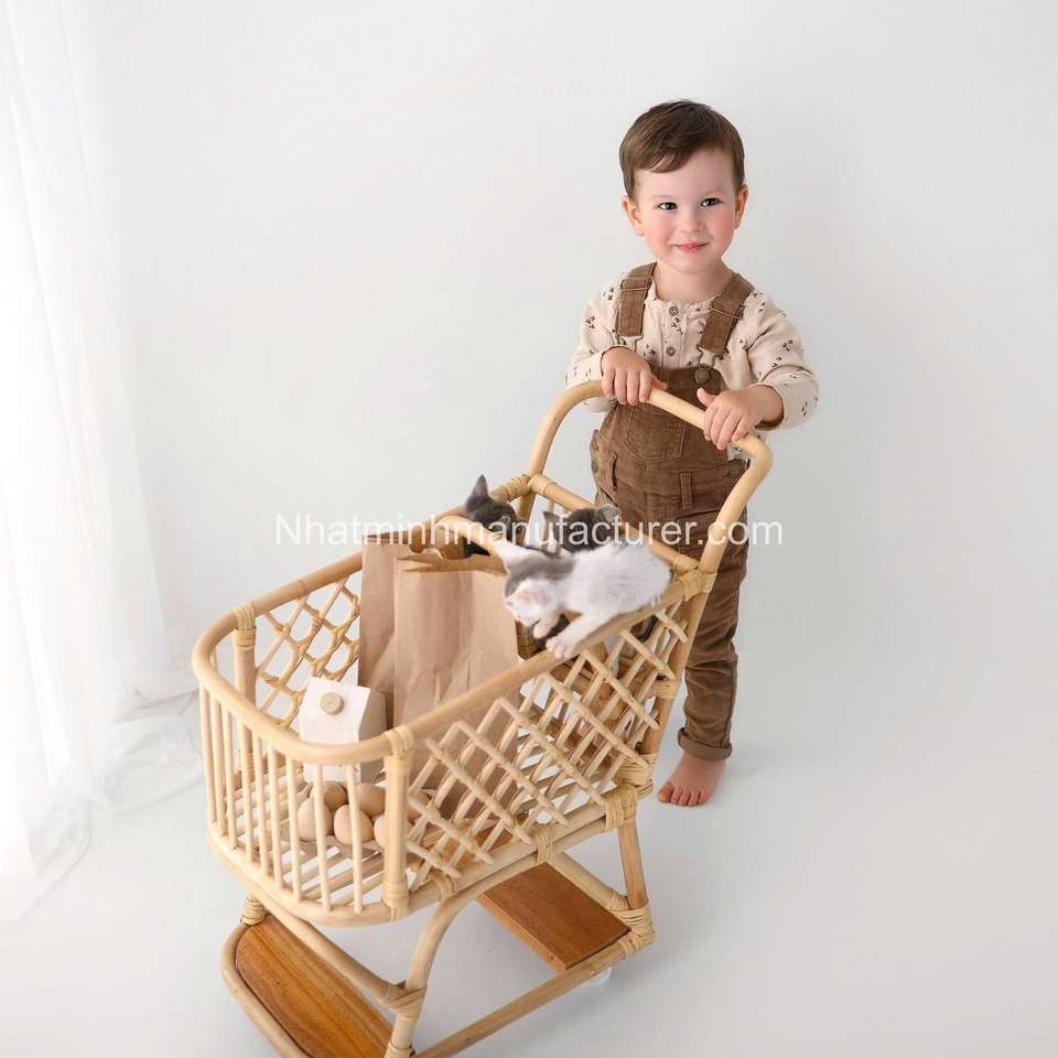 Creative Style Rattan Supermarket Cart Mini Shopping Trolley