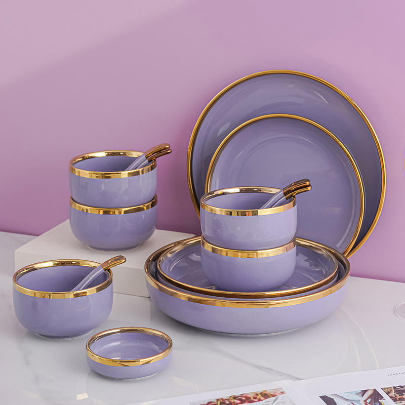 Creative Unique Internet-Famous Gold-Rimmed Western-Style Disposable Ceramic Dish Set New Design Flat Plate Bowl for Home Plant