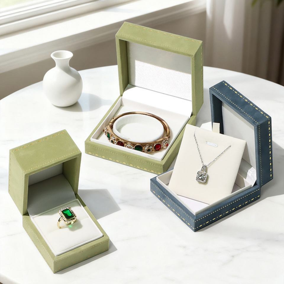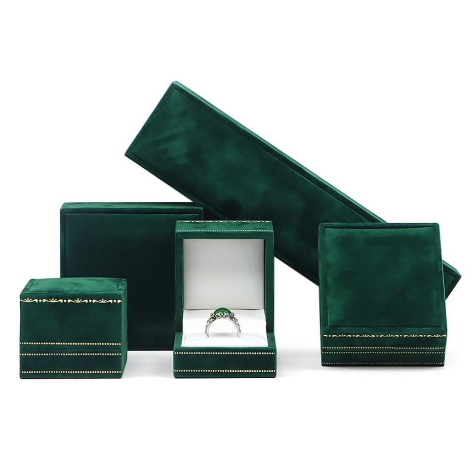 Creative Velvet Jewelry Box Packaging Box Green Navy Blue Right Angle Vintage Style Velvet Trim Jewelry Box for Jewelry Packing