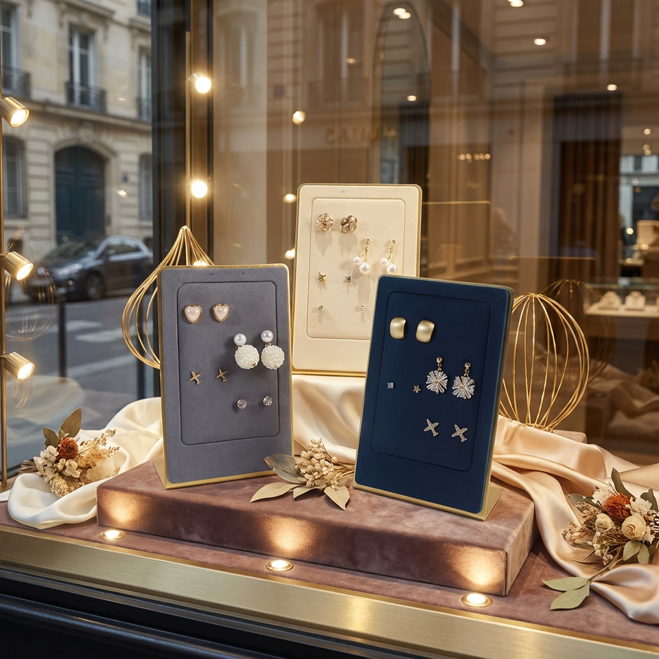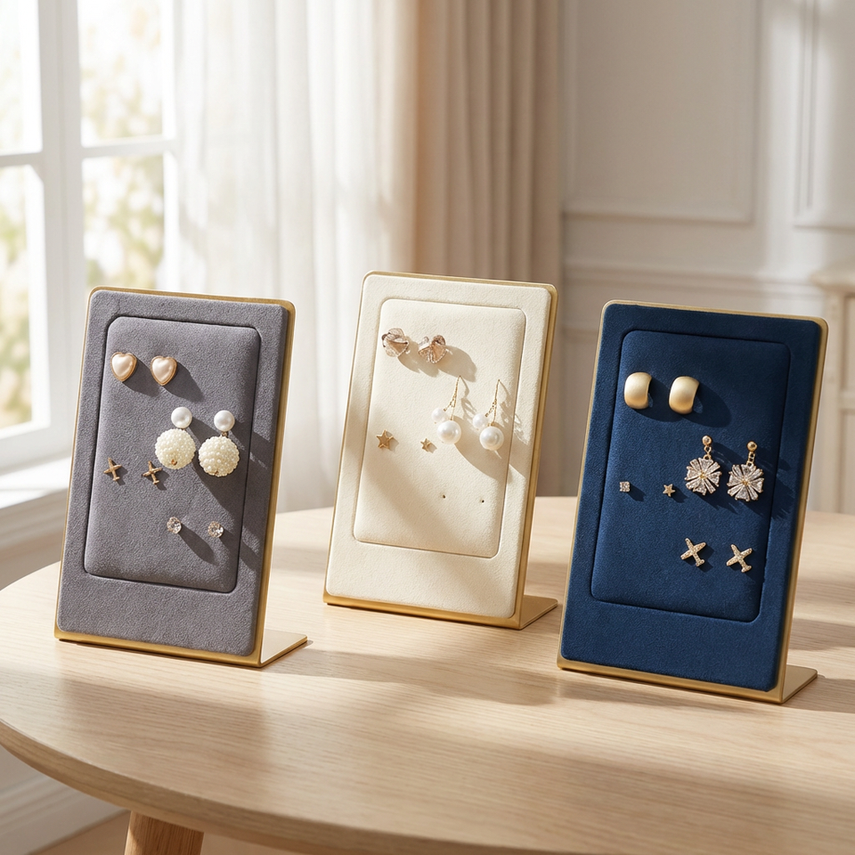 Creative Vertical Ear Nail Rack Microfiber Flannel Metal Shelf Earrings Rack Gift Boxes Leather Lining Geometric Design