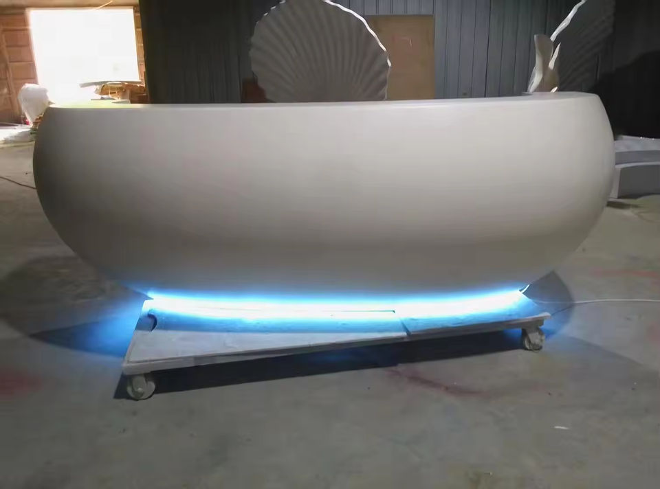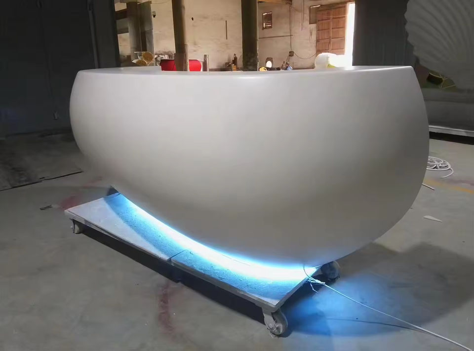 Creative White Extendable Reception Desk with LED Lighting Modern Shell Shaped Front Desk for Mall & Hotel Use