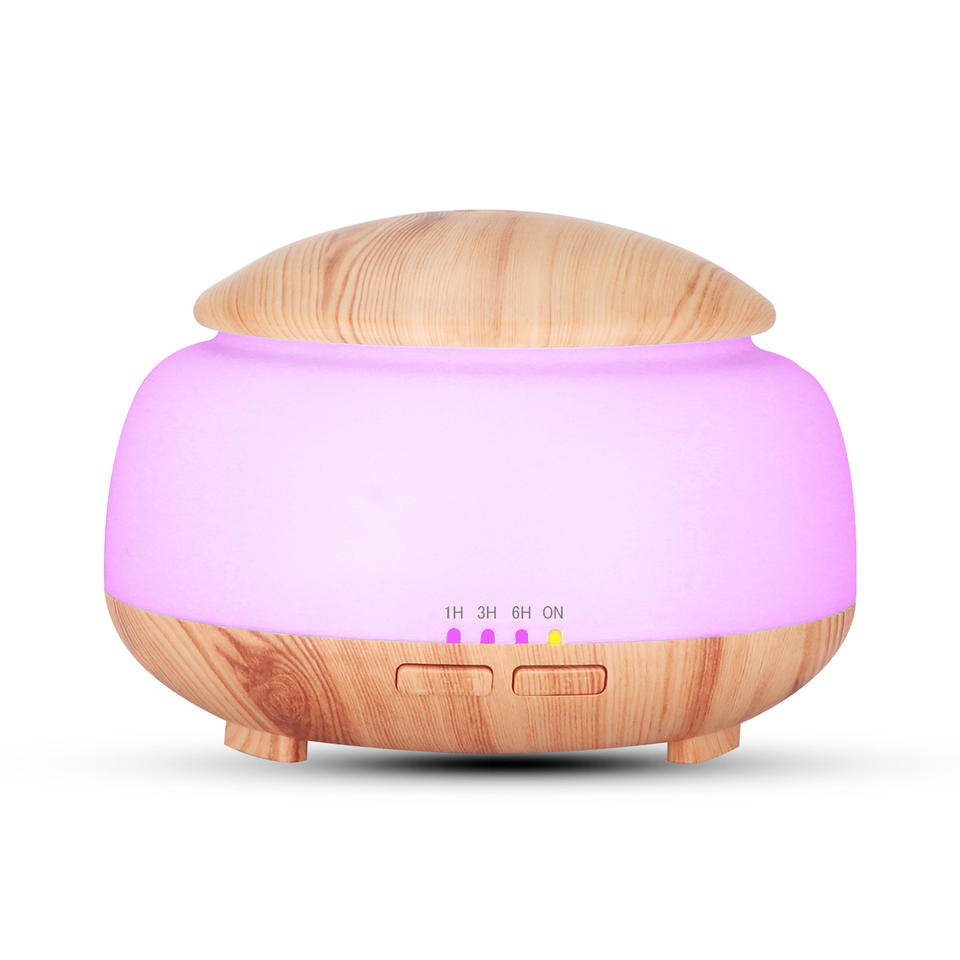 Creative Wood Grain Aroma Diffuser 300Ml Ultrasonic Humidifier With Led Light Touch Control For Home Bedroom