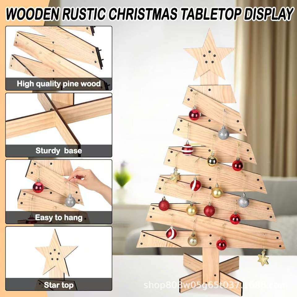 Creative Wooden Christmas Tree Decorations Natural Wood Color Foldable Battery Operated Multicolored Lights Easy Installation