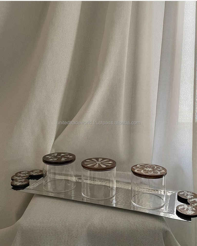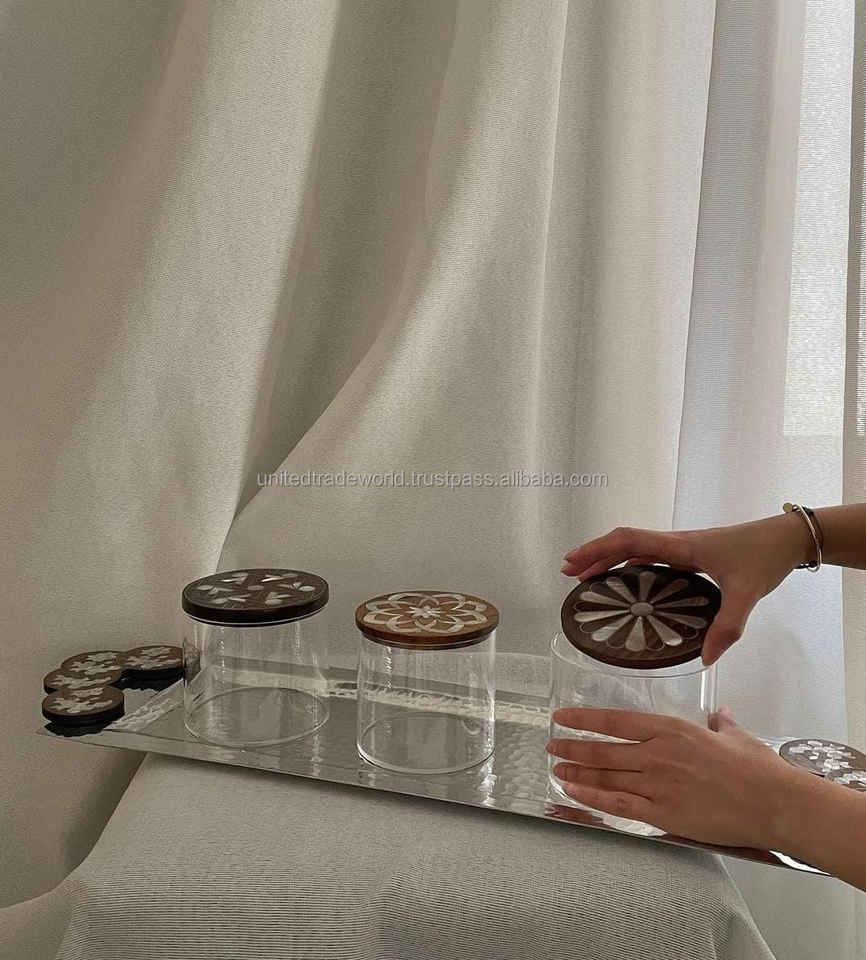 Product Name:Mother of pearl wood Acrylic Jar tray set