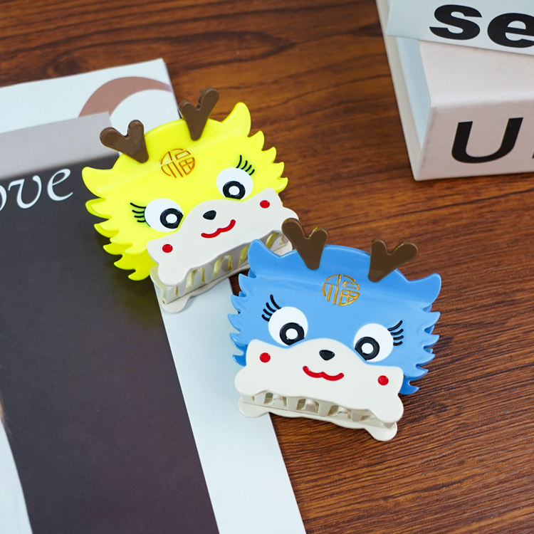 Creative acetate cute animal material hair claw clips dragon campus single color Popular children daily hair accessories