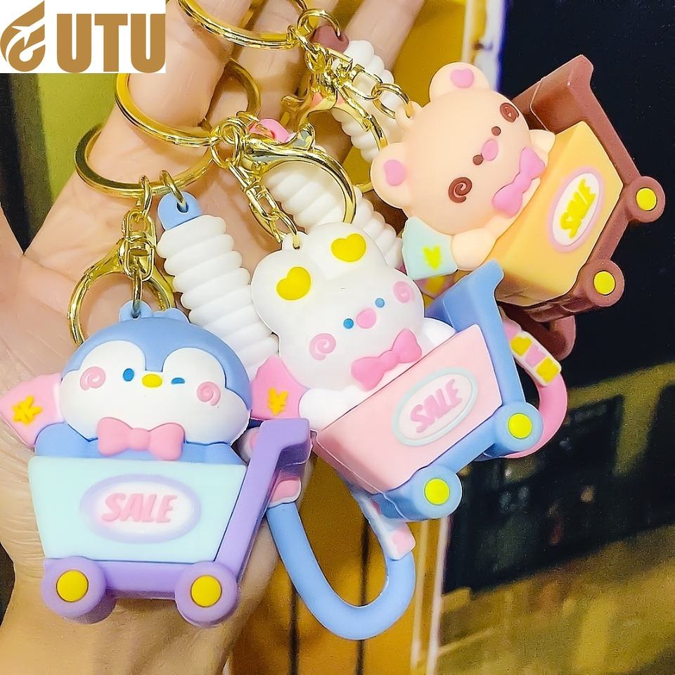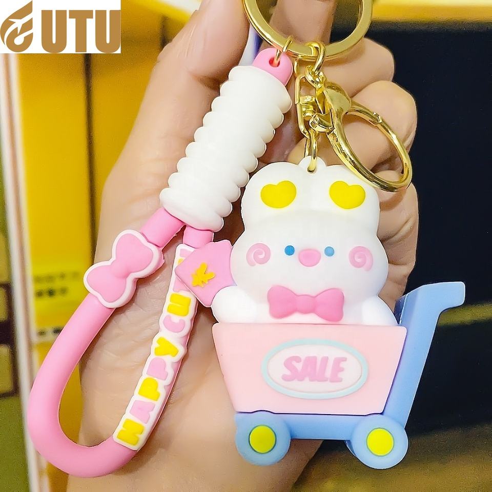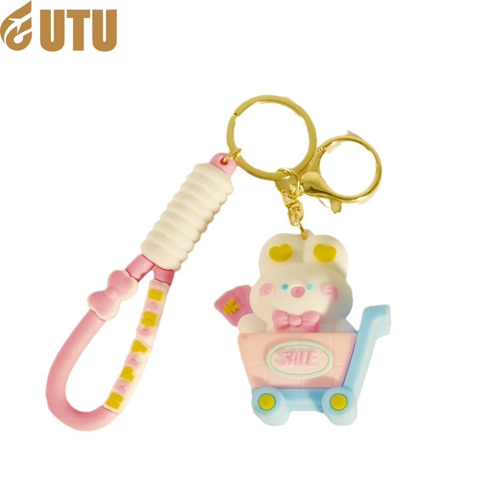 Creative cartoon bear rabbit doll car drop glue keychain chain ring pendant small pendant small gift gift wholesale-F