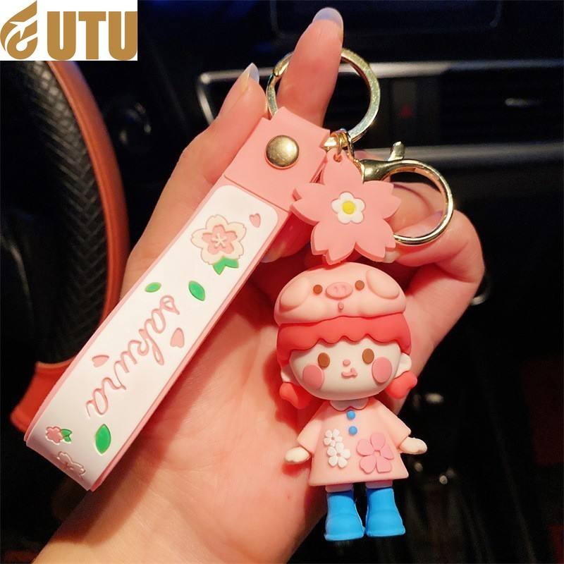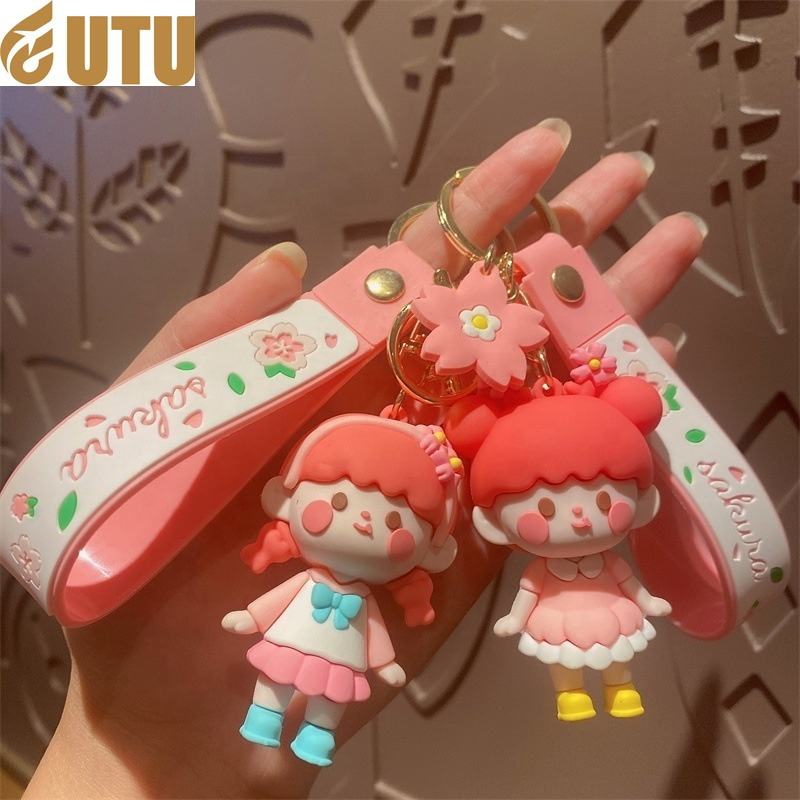 Creative cute anime sakura girl female pvc cartoon doll hanging bag pendant key chain-F