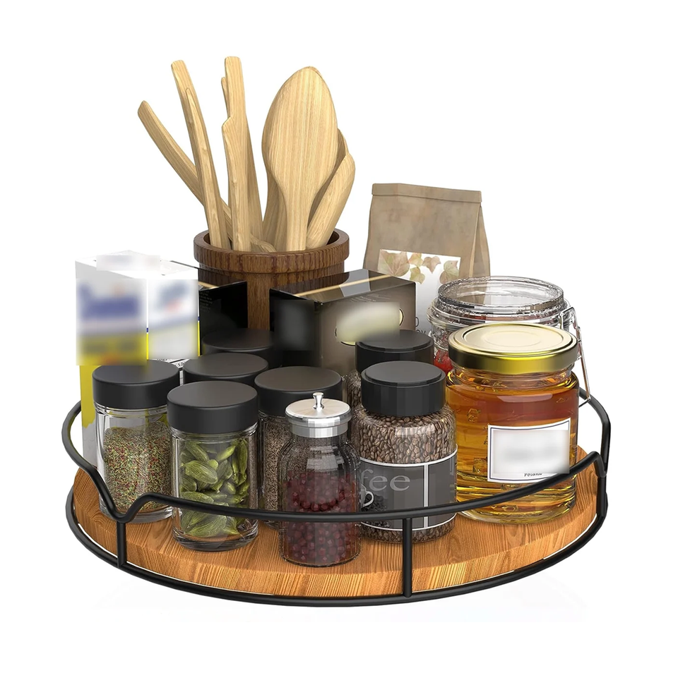 Creative look Wood 10 Inch 2-Tier Lazy Susan Turntable Organizer Spice Rack Storage Holder & Rack high quality