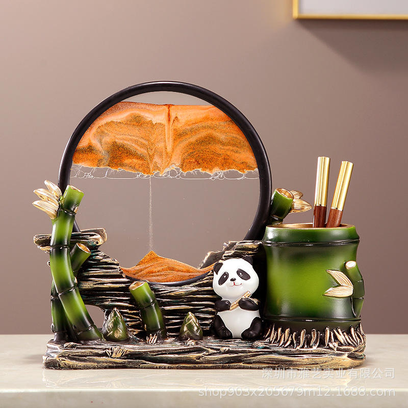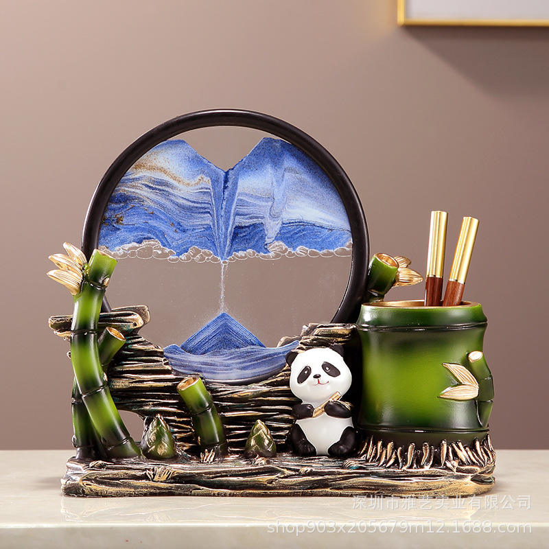 Creative Panda Sculpted Epoxy Resin Pen Holder Quicksand Painting Decoration Living Room Entrance Study Bookcase Office