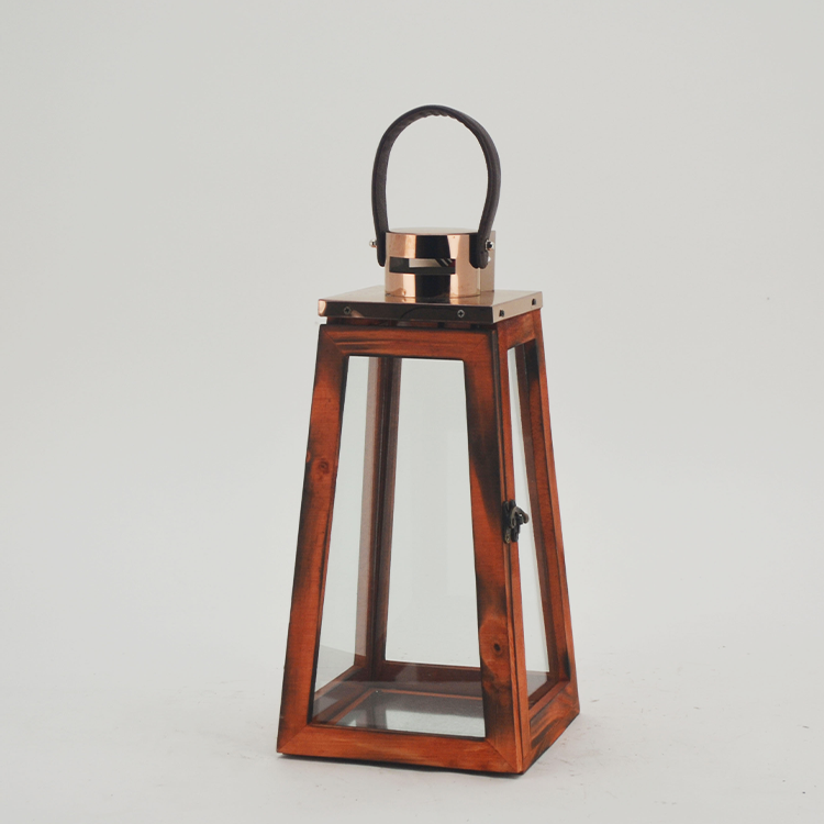 Creative vintage Fancy Style Home And Garden Wood Glass Lantern For Candle With Stainless Steel Top