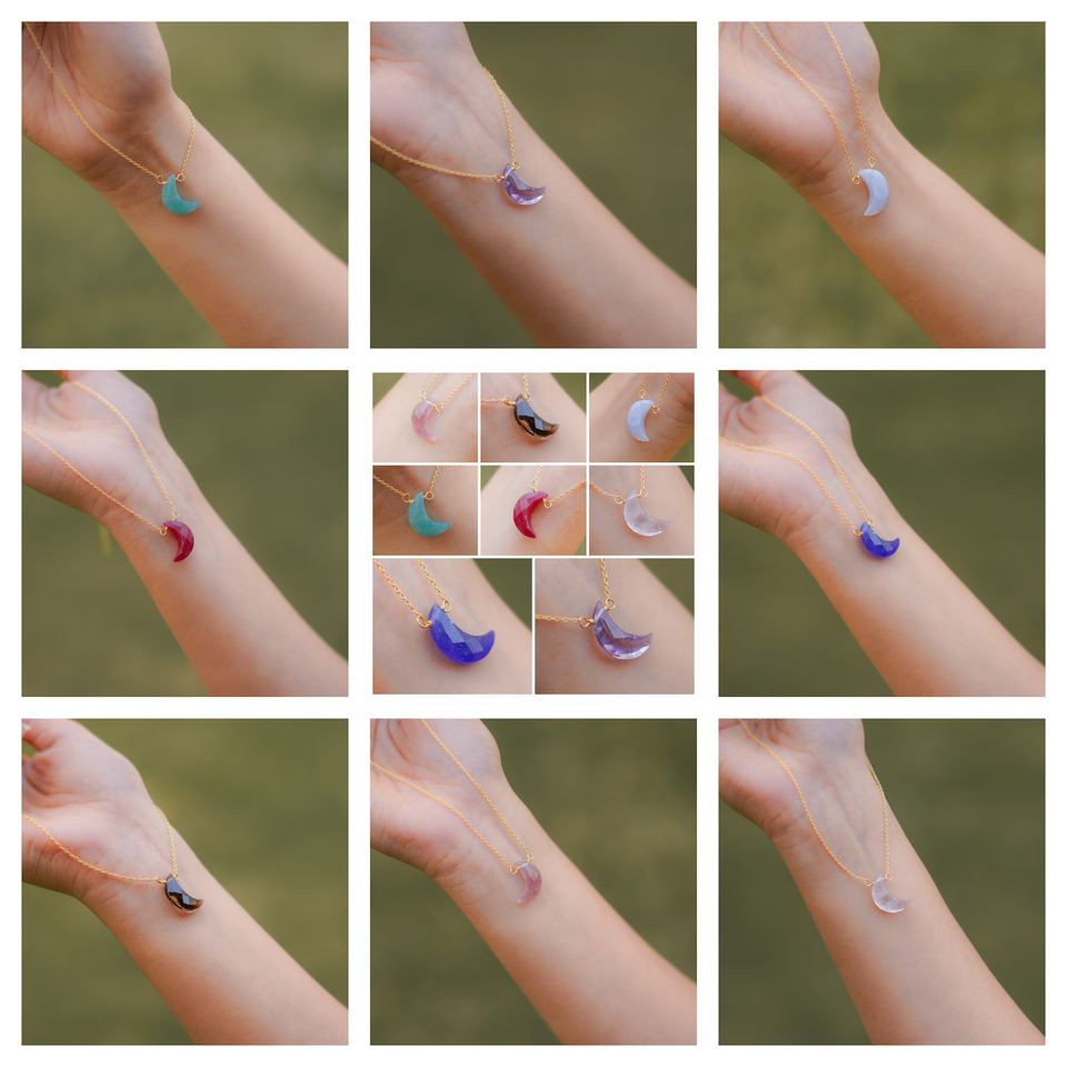 Crescent Moon Amethyst Gemstone Wire Wrap Charm Double Bail Pendant Necklace 925 Silver Jewelry