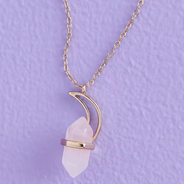 Crescent Moon Rose Quartz Crystal Point Pendant Gold Plated Healing Stone Jewelry Wholesale