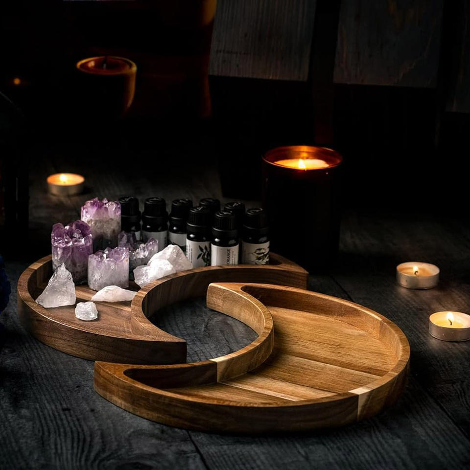 Crescent moon shaped jewelry storage wooden tray best selling decorative natural wood trays