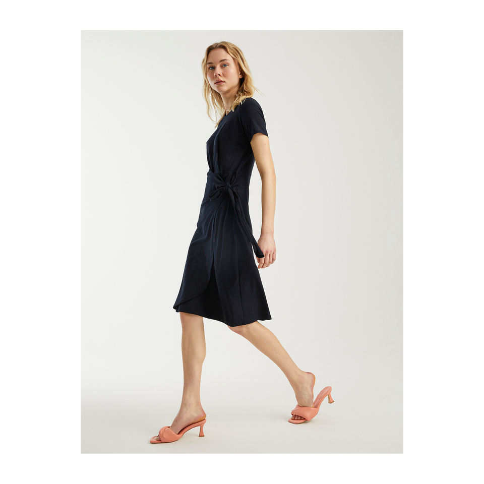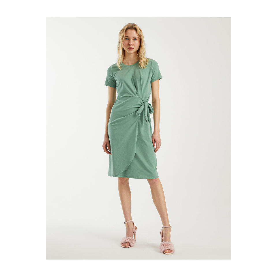Crew Neck Half Sleeve Belted Very Colorful Midi Cotton Casual Unlined TR Made Half-Length Dress