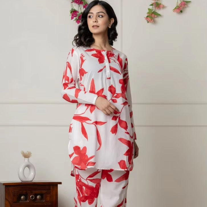 Closure:Top : Button placket (half), Bottom: Elasticated waistband