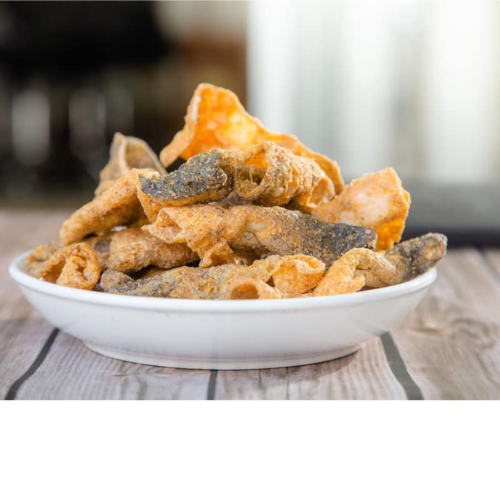 Crispy Fried Salmon Skin Snack Supplemented with Omega 3 Omega 6 for People Spicy Fried Salmon Skin with No Preservatives 100% n