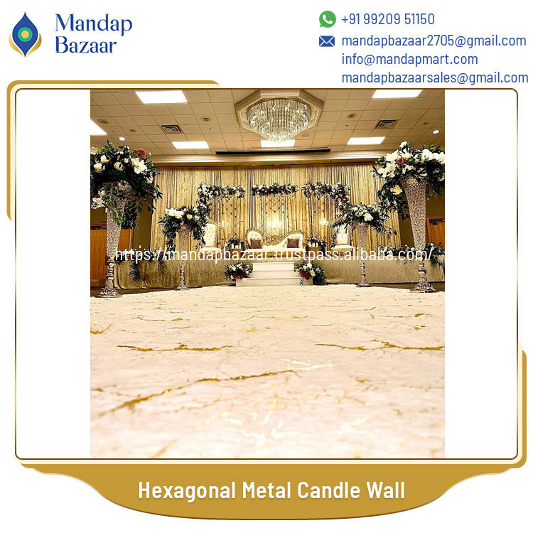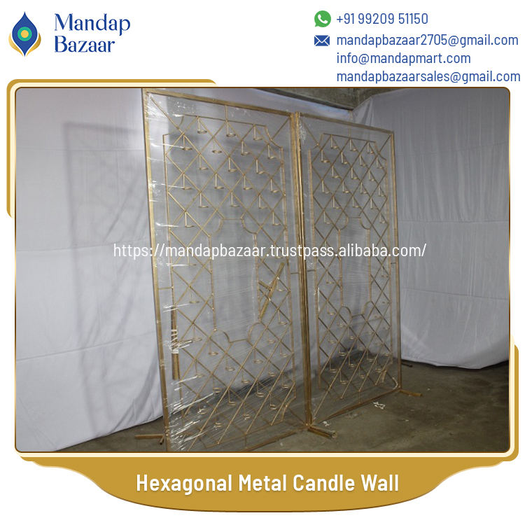 Criss-Cross Design Light-Weight MS Metal Candle Wall Frame Hexagonal Shape for Traditional Wedding Events Decoration