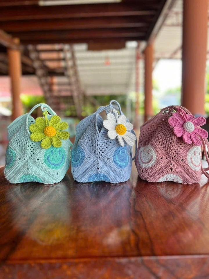 Crochet Bag Women's Crochet Tote Bag Knitted Shoulder Crossbody Handbags Cute Crocheted Bag for Girls OEM Made in Vietnam