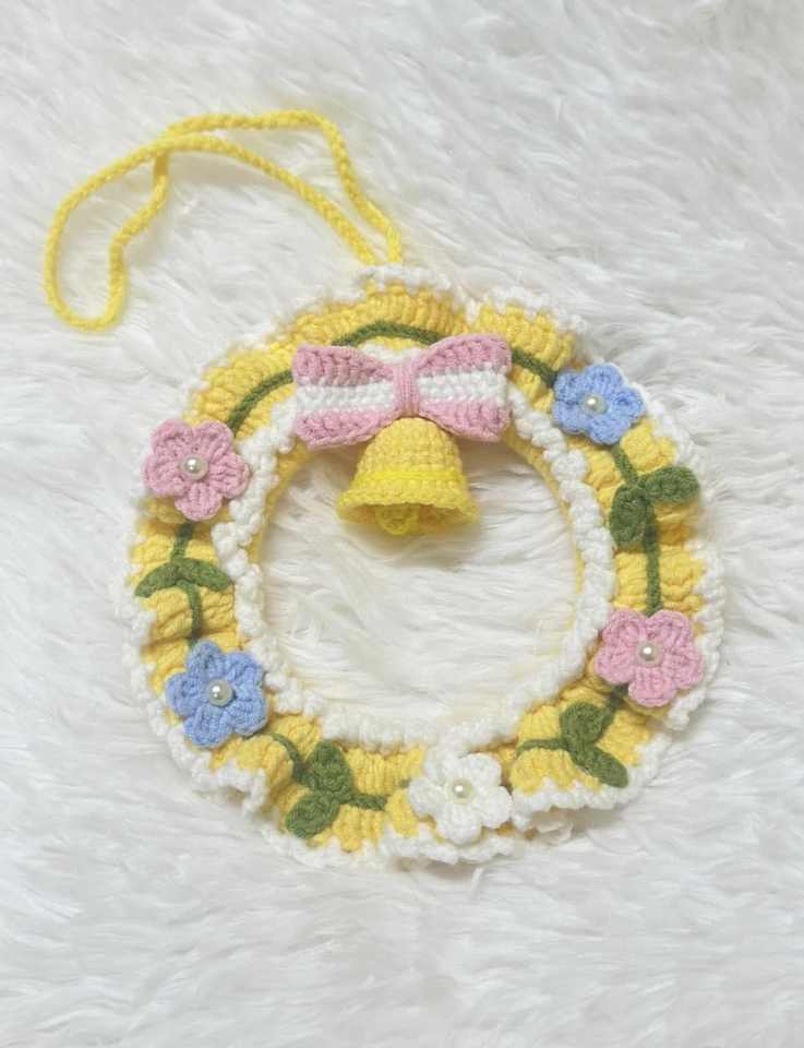 Crochet Christmas Wreath Handmade Wool Yarn Holiday Door Decoration from Vietnam