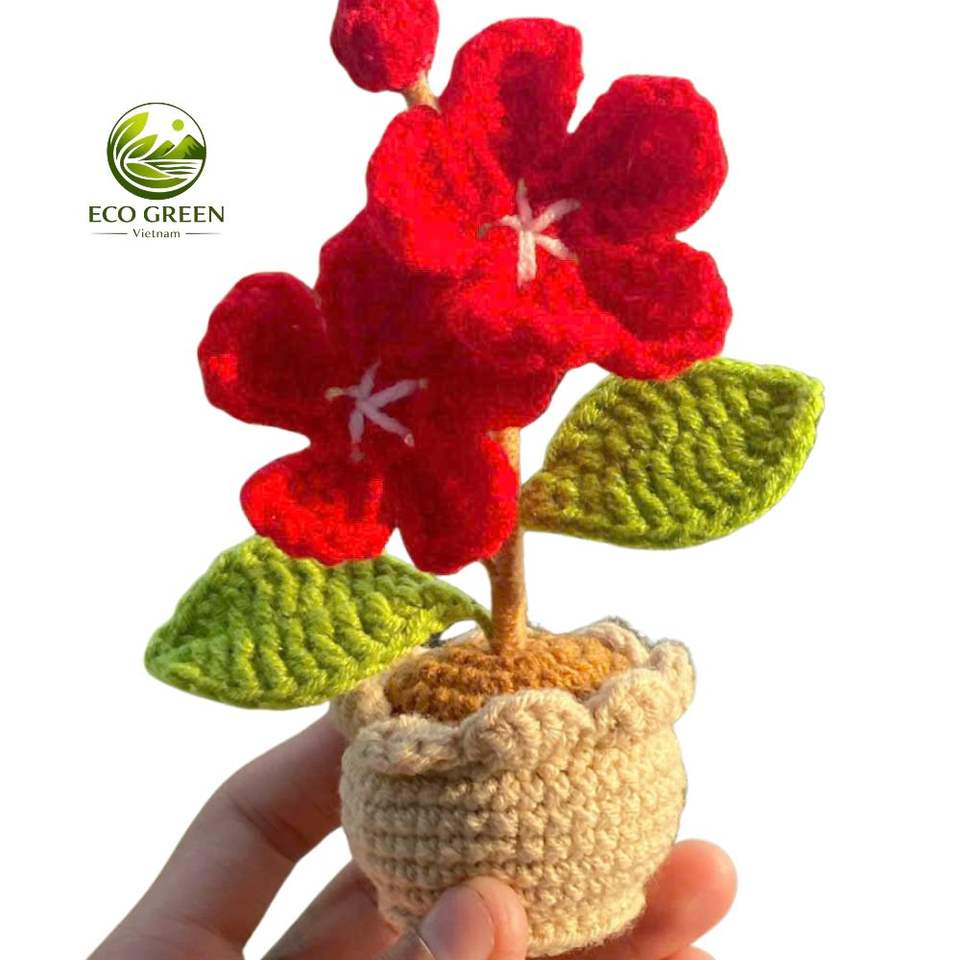 Crochet Flower Pot Forget Me Not with Heart Handmade for Gift Cute Desk Decor for Mom Stress Relief 100% Polyester