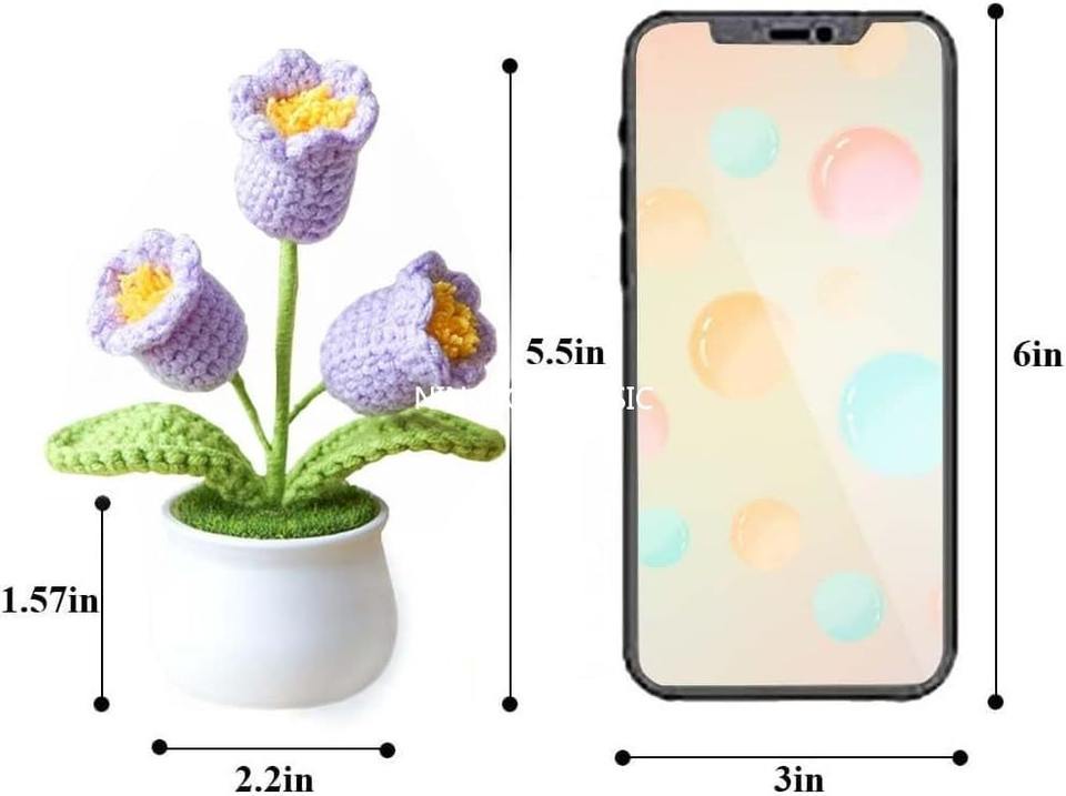 Crochet Flowers Artificial Small Potted Knitted Orchid of The Bell Flowers for Handmade Traditional Home Decoratio