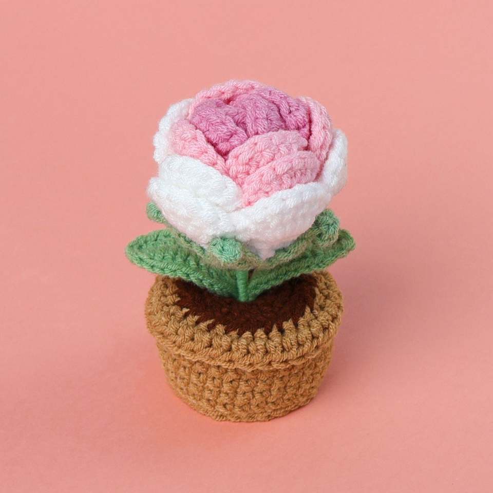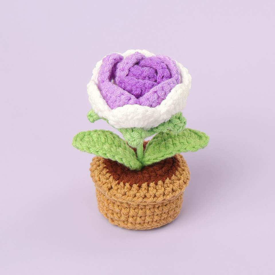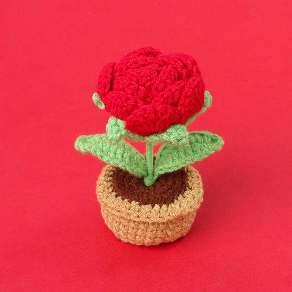 Crochet Kit for DIY Decorations Simple Handmade Rose Potted Plant Ornament Materials for Halloween and Easter Decor
