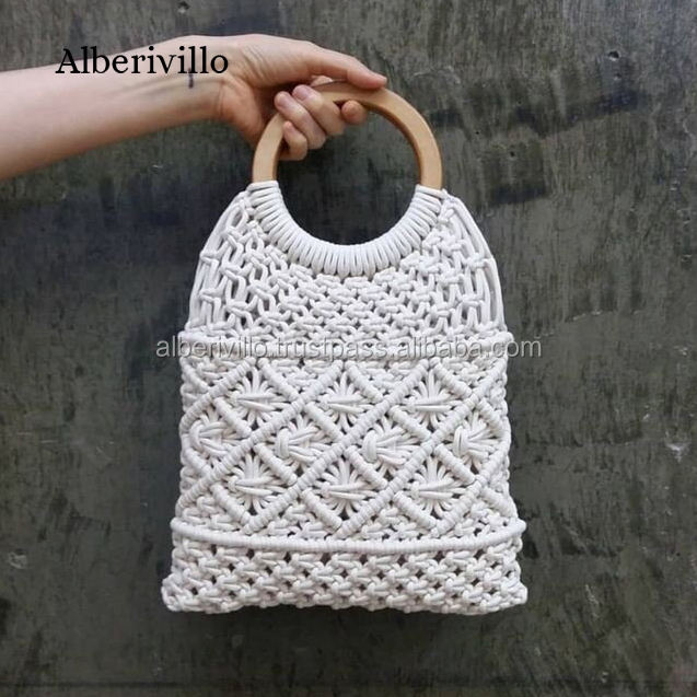 Crochet Macrame Shoulder Bag for Women Bohemia Chic Style Woven Macrame Bags Handbags for Party Designer Macrame Shopping Bag