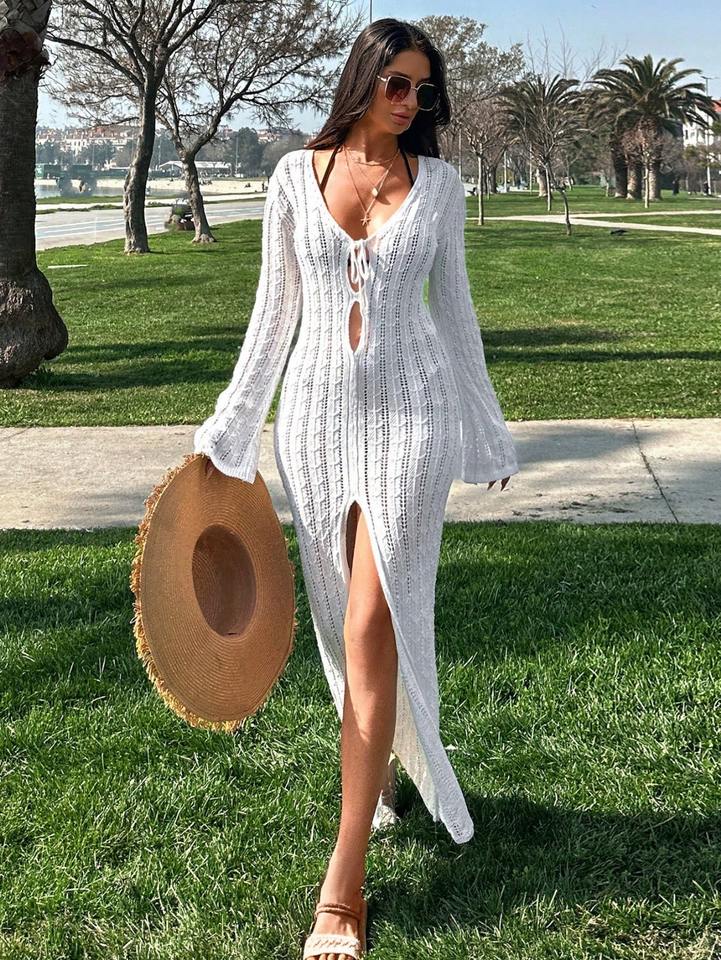 Crochet Swimsuit Cover Up for Women Knit Mesh Beach Dress Lightweight Summer Bikini Coverup Pool & Travel Style L/XL