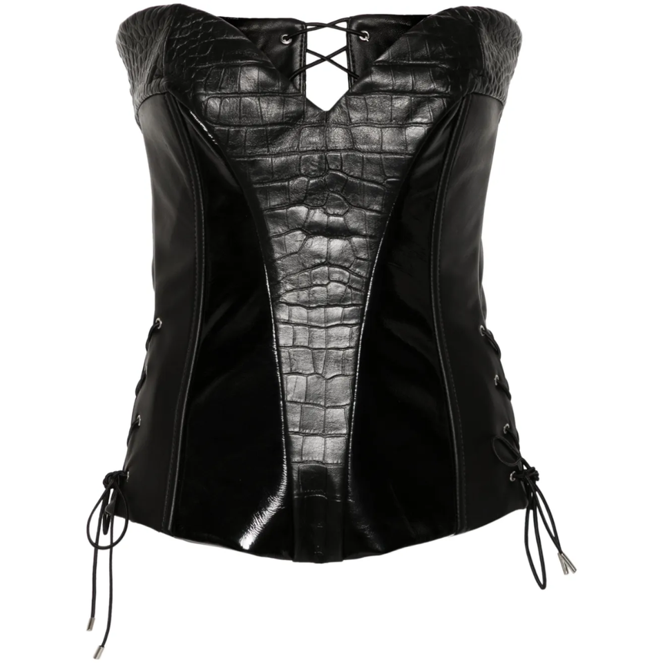 Crocodile Embossed Leather Corset Top For Women's Genuine Cowhide Reptile Croc Print Leather Corset Top For Roleplay
