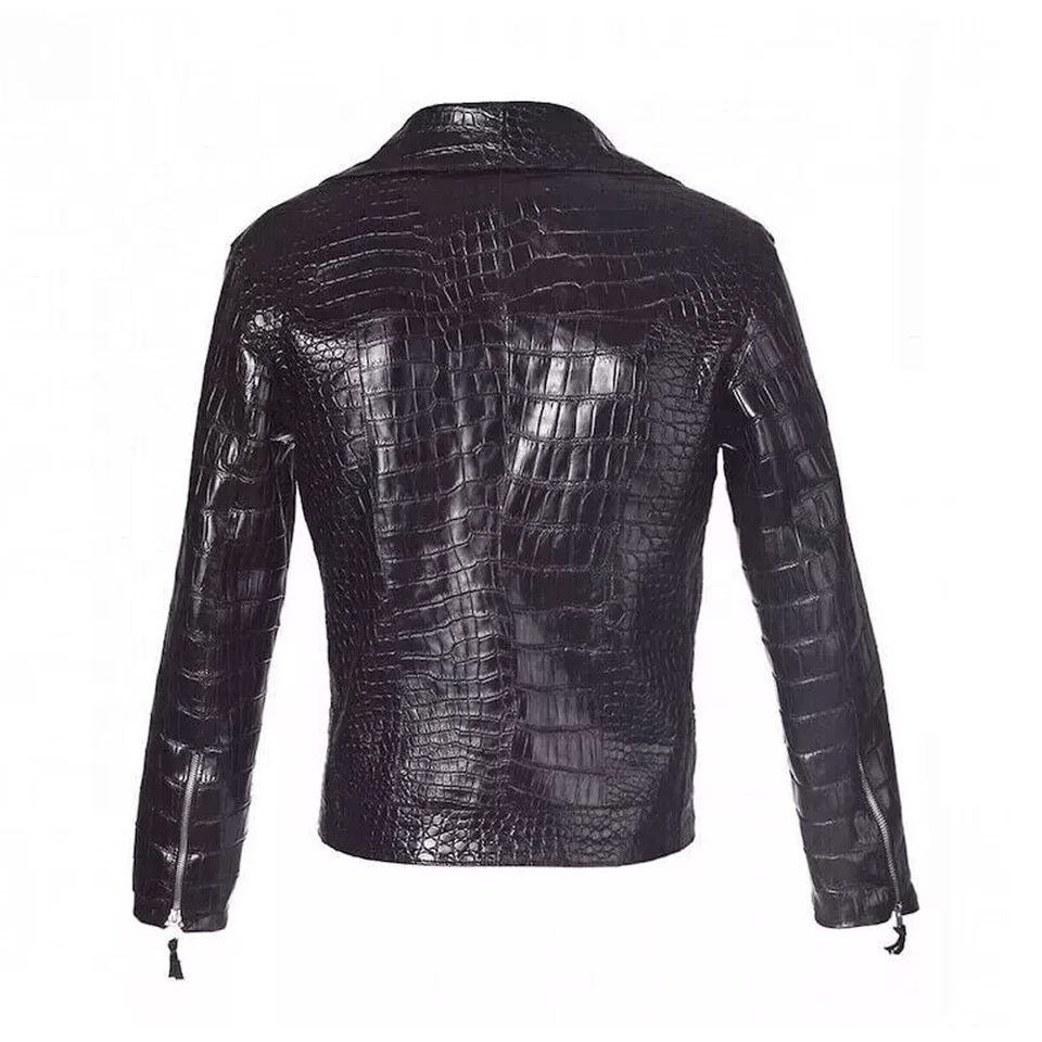Crocodile Embossed Leather Jacket For Men's Cow-skin With Croc Print Biker Jacket Top