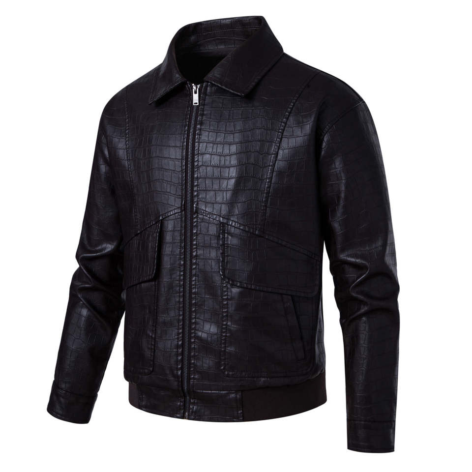 Crocodile skin Men's Leather Jacket 100% Genuine Cowhide Men's Leather Jacket Embossed Vintage Style Autumn jacket for men
