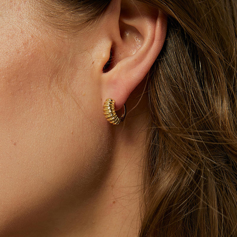 Fashionable Gold & Rhodium Plated Brass Unisex Huggie Earrings Geometric Croissants Bread Design Small Hoop Earrings for Gift