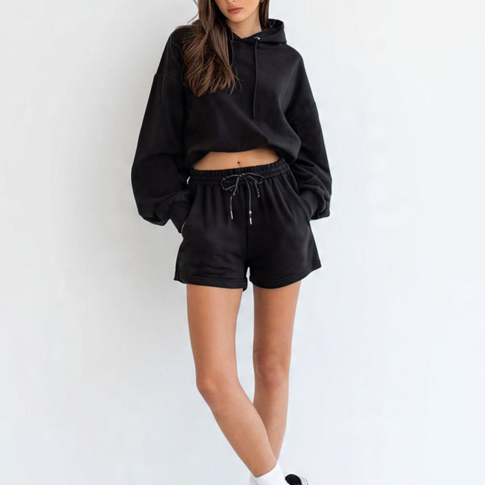 Product name:Crop Hoodie Jogger Sweat Shorts Set