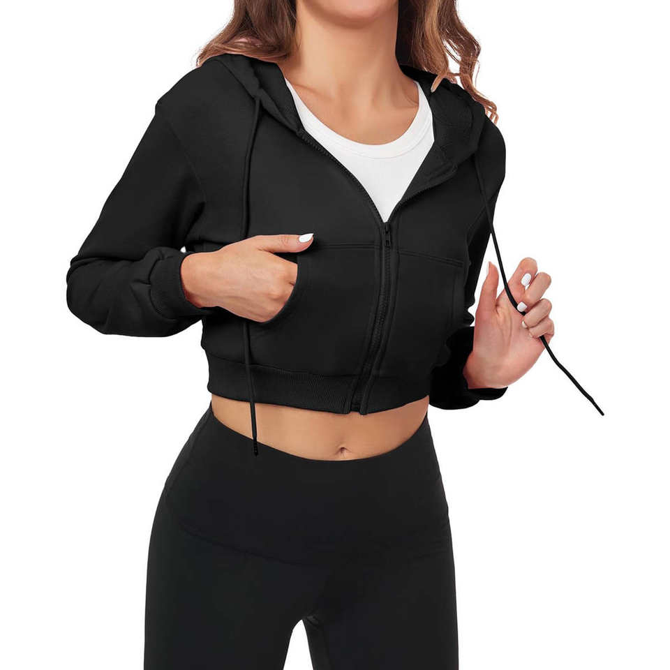 Crop Top Hoodie Custom Logo Design Zipper Hoodie Drawstring Hoodies High Quality