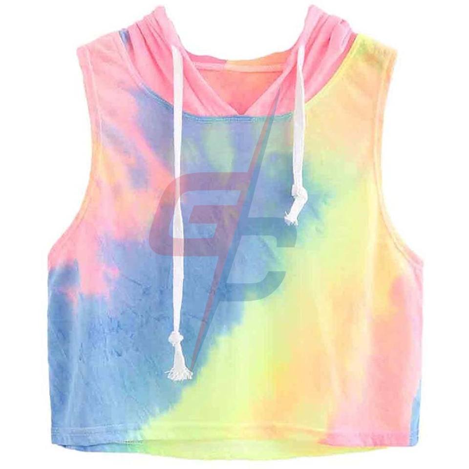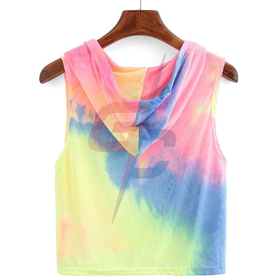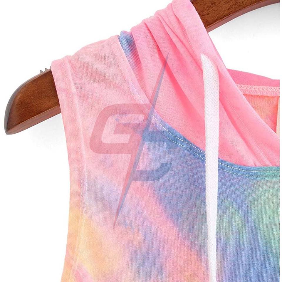Crop Top Hoodie, Teens Women's Summer Sleeveless Tie-Dye Print Hooded Tank Top Vest Shirt Supplier
