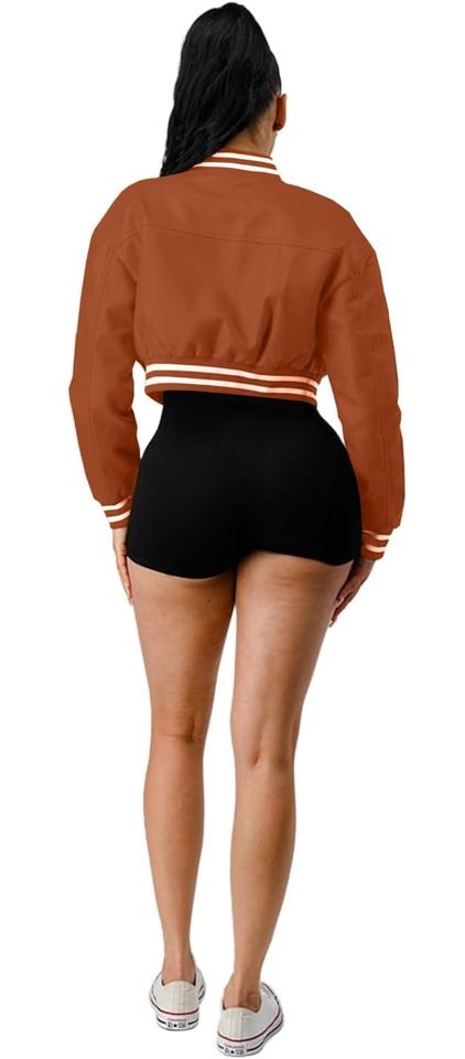 Product name:Crop Top Letterman Faux Leather Cropped Varsity Jacket