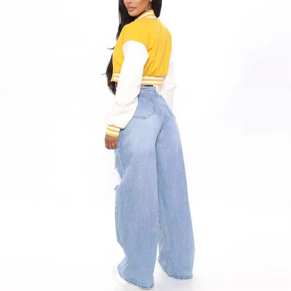 Crop Varsity Women's Jacket Long Sleeve Short Length Casual Wear Windproof Breathable Waterproof Reversible Wool Canvas Pakistan