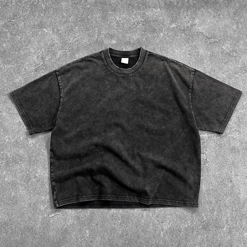 Cropped Short Sleeve T-Shirt Streetwear Boxy Snow Wash Distressed Basic