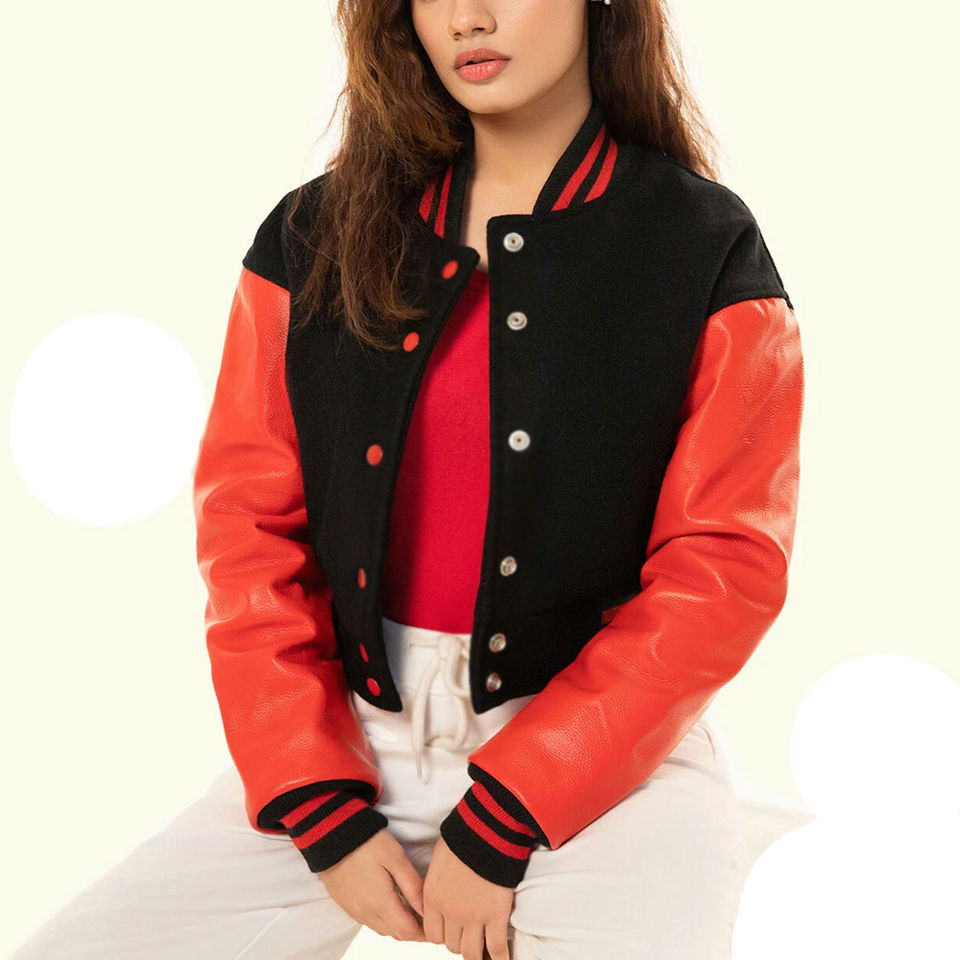 Product name:Women Cropped Varsity Jacket
